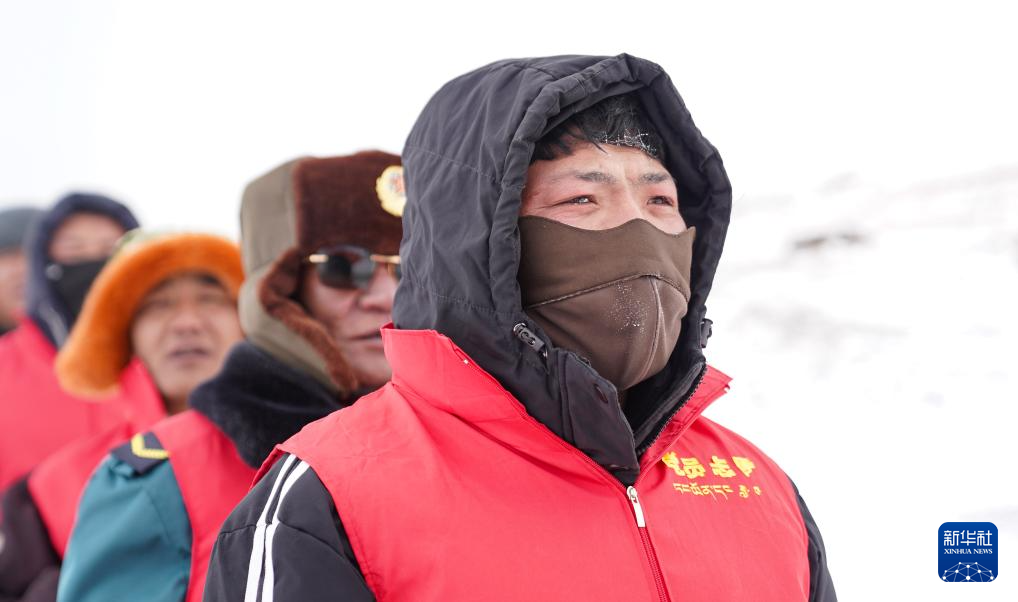 守護(hù)長江源的瑪曲鄉(xiāng)長江源環(huán)保志愿隊(duì)隊(duì)員(2月2日攝)。新華社記者 晉美多吉 攝