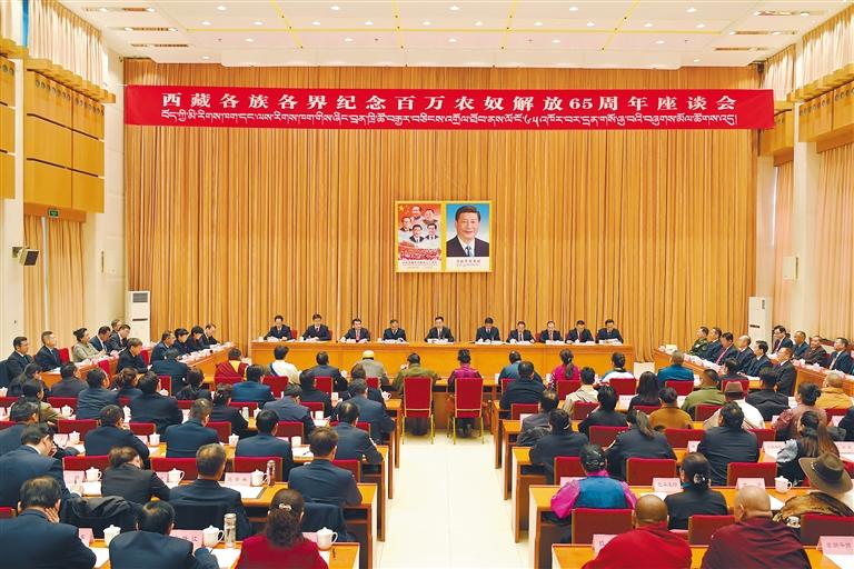 3月28日,西藏各族各界紀(jì)念百萬(wàn)農(nóng)奴解放65周年座談會(huì)在拉薩召開(kāi)。
