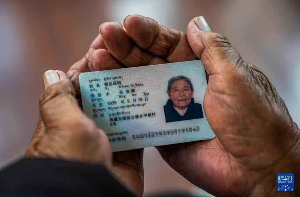 斯曲旺姆展示自己的身份證(3月13日攝)。新華社記者 孫非 攝
