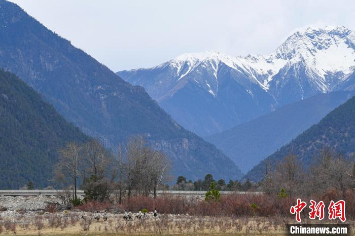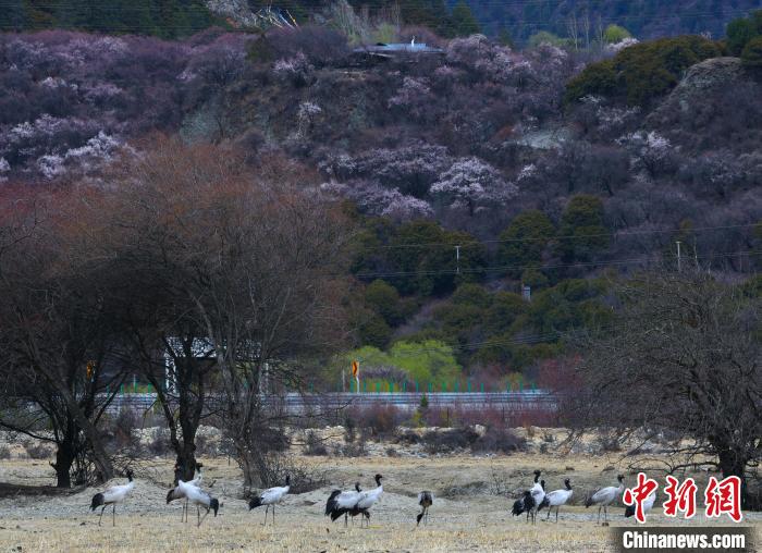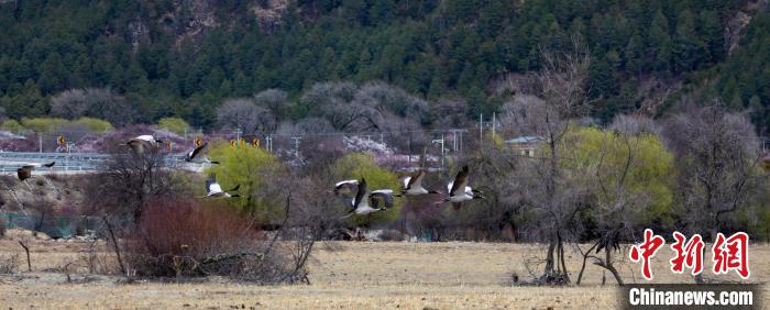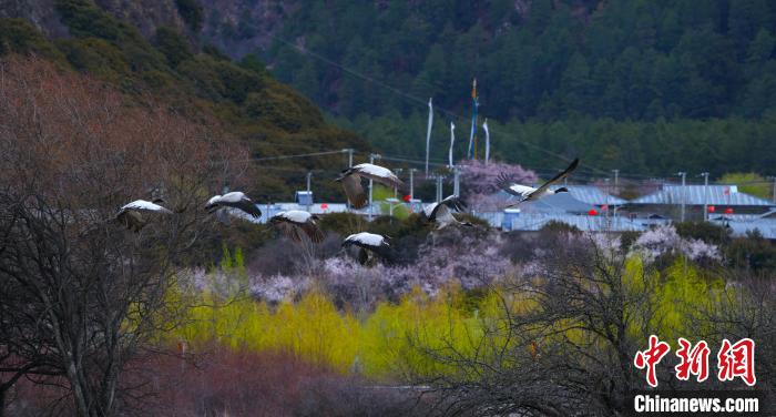 3月30日,在西藏林芝市巴宜區(qū)更章門(mén)巴民族鄉(xiāng)境內(nèi),黑頸鶴在村莊里、盛開(kāi)的桃花前、雪山下翩翩起舞,形成一幅絕美的自然畫(huà)卷。黑頸鶴,被譽(yù)為“鳥(niǎo)類(lèi)大熊貓”,是國(guó)家一級(jí)保護(hù)野生動(dòng)物,也是世界上唯一在高原地區(qū)生長(zhǎng)和繁殖的鶴類(lèi)。近年來(lái),西藏不斷加大黑頸鶴生存環(huán)境保護(hù)力度。據(jù)2022年冬季越冬黑頸鶴種群數(shù)量調(diào)查顯示,在西藏越冬的黑頸鶴種群數(shù)量達(dá)11175只,種群數(shù)量持續(xù)增長(zhǎng),并在西藏全區(qū)均有分布,其瀕危等級(jí)也從“易危”降為“近?!薄T诹种?,黑頸鶴在桃花與雪山間自由翱翔,展現(xiàn)了人與自然和諧共處的美好場(chǎng)景。