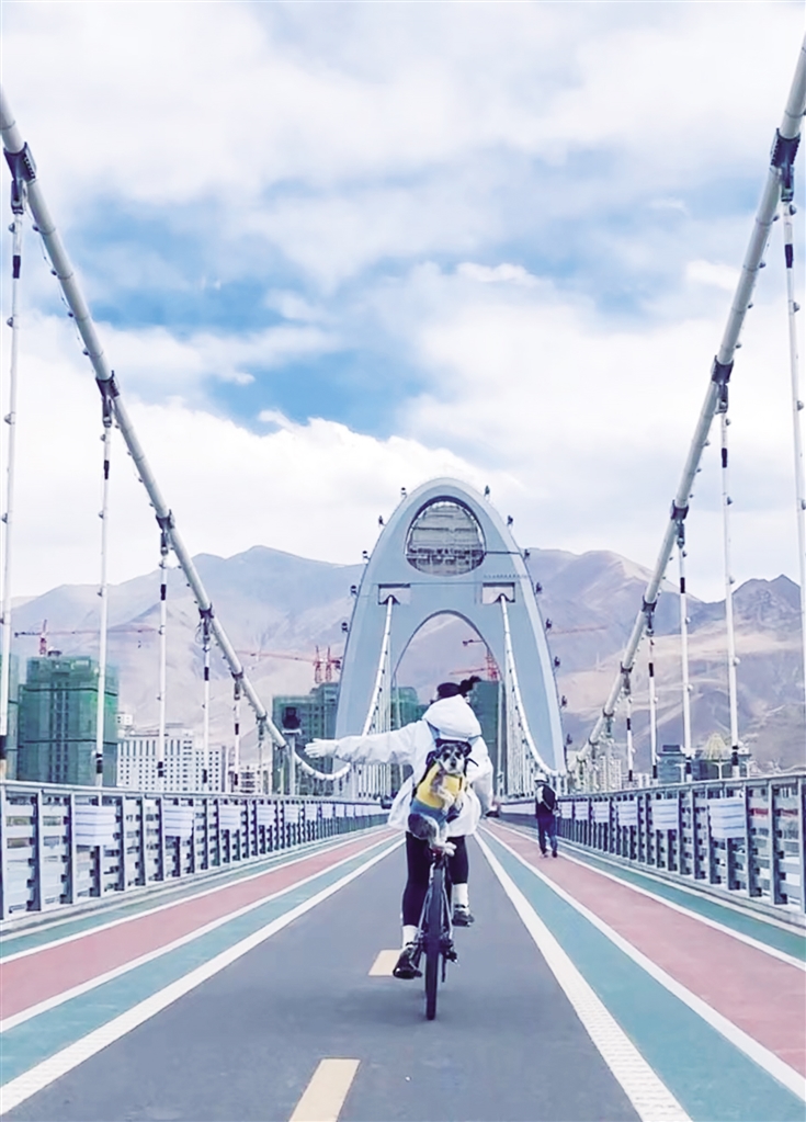 早上9時(shí)許,拉薩市區(qū)的街道一掃清晨的靜謐,各式各樣的車輛走走停停,在高峰期的馬路上緩緩行進(jìn)。54歲的旦增克珠身著專業(yè)騎行服,在非機(jī)動(dòng)車道上愜意飛馳。“現(xiàn)在天氣越來越舒服了,不論平常上班還是周末去宗角祿康公園跳舞,我都會(huì)選擇騎自行車出行。”