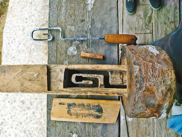 圖為八蓋鄉(xiāng)日卡村糧倉(cāng)的木鎖。