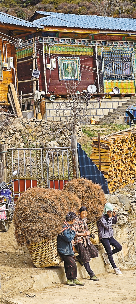 雖然日卡村與外界相隔重重深山峽谷,但人口少、資源多,既有農(nóng)田種植的小麥青稞、油菜等,也有牧場(chǎng)放養(yǎng)的成群牛羊,還有大片樹林可采集松茸、羊肚菌、天麻等,連松針都被勤勞的村民收集漚肥,村里成群放養(yǎng)的藏香豬也在證明這里庭院經(jīng)濟(jì)的豐富。