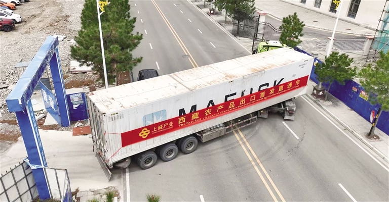 西藏農(nóng)產(chǎn)品出口首發(fā)直通車(chē)。圖由林芝市委宣傳部提供