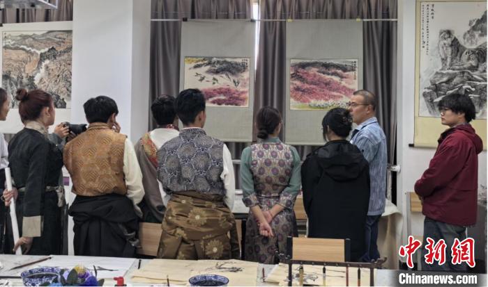 西藏大學藝術(shù)學院師生在欣賞美術(shù)作品。西藏大學藝術(shù)學院供圖