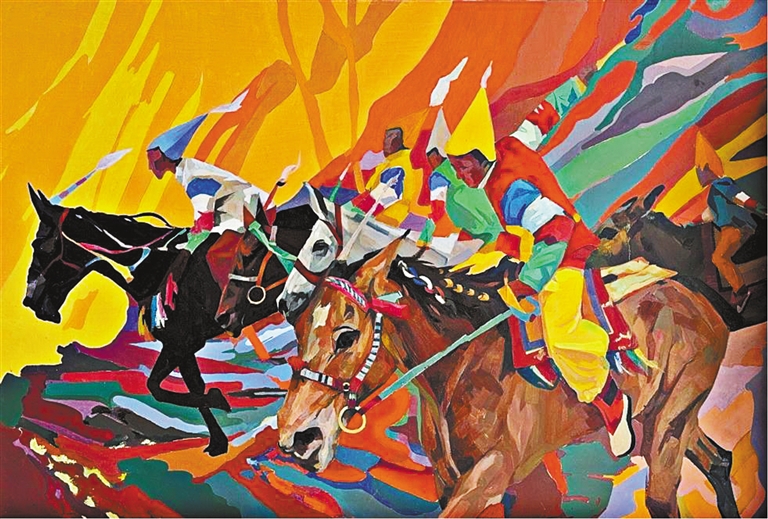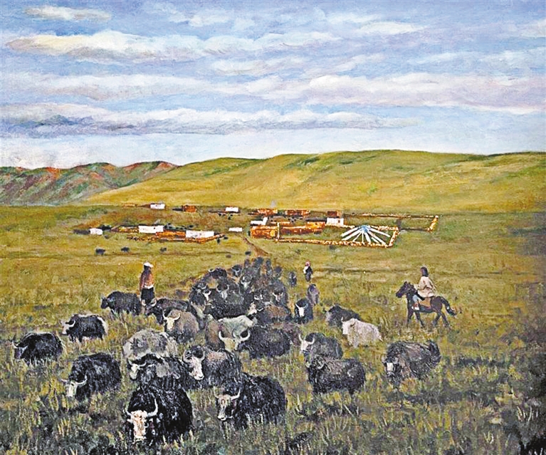 美術(shù)二等獎(jiǎng)作品《幸福西藏·牧區(qū)印象》?!∽髡摺」?/p>