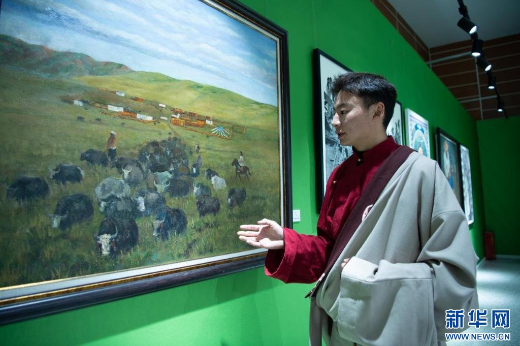 4月28日,第五屆民族團(tuán)結(jié)書法、美術(shù)、攝影、微視頻大賽作品展現(xiàn)場。新華網(wǎng) 旦增努布 攝