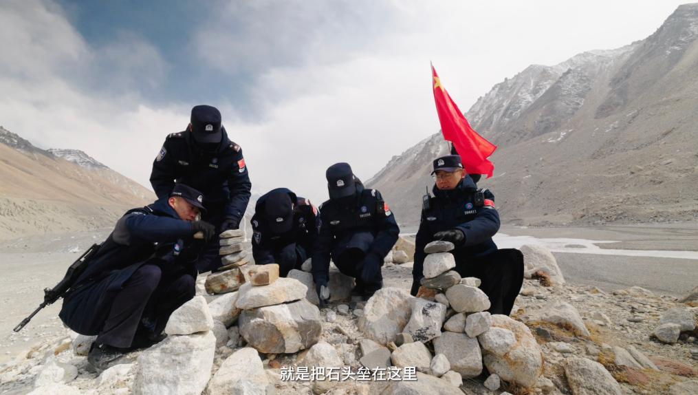 又經(jīng)過4個小時的跋涉,巡邏隊最終抵達本次巡邏的終點。每次到巡邏任務結(jié)束,都會在這里留下一個小石頭,并許下一個愿望,祝祖國繁榮昌盛,也祝自己心想事成。