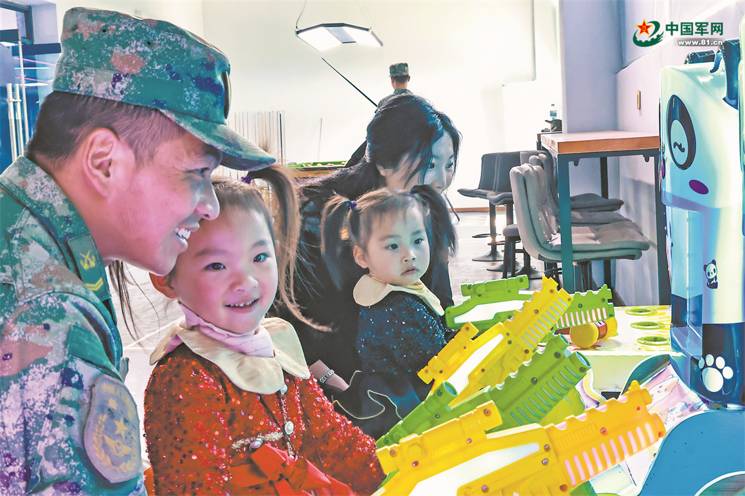 該旅營區(qū)環(huán)境已今非昔比,各種設(shè)施日益完善,官兵及其家人在軍營團聚,臉上滿是幸福。王俊杰夫婦陪同孩子在生活服務(wù)中心玩耍。彭融瑞 攝