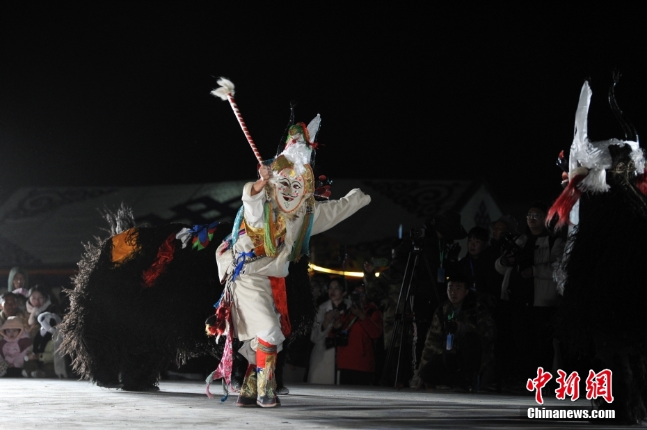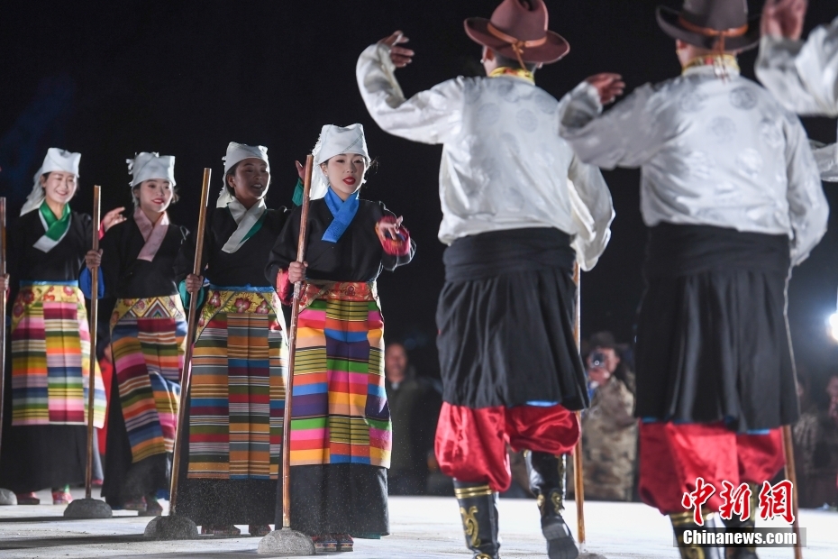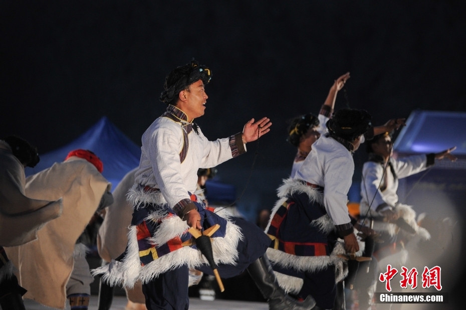 篝火鍋莊舞晚會上的文藝演出。中新社記者 貢嘎來松 攝