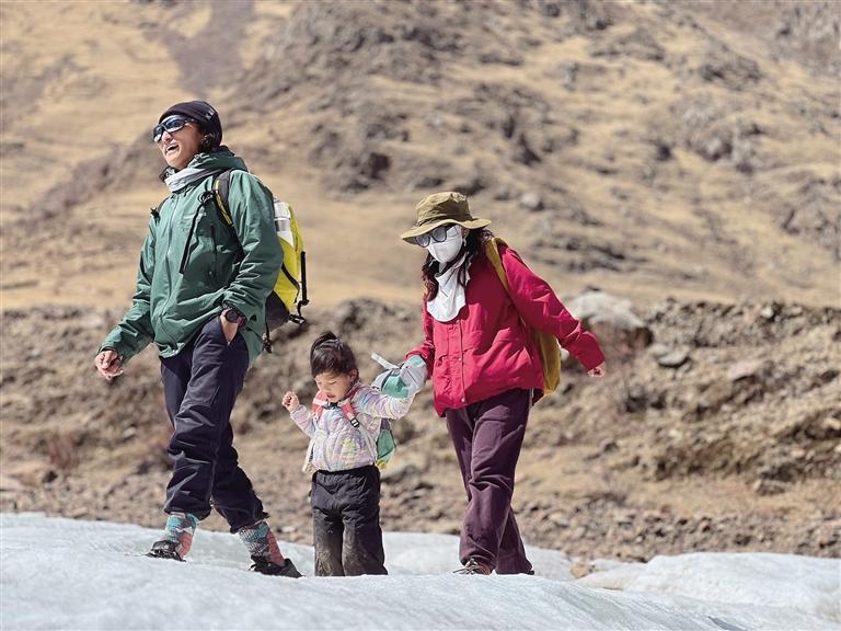 1小時(shí)46分后,記者終于登頂南山。在山巔,“徒步搭子”們相互拍照留念,慶祝登頂?shù)南矏?。市民白瑪曲珍說:“我從去年夏天開始帶著女兒徒步。走走停停中,發(fā)現(xiàn)孩子既能接觸大自然又能強(qiáng)身健體,同時(shí)戶外活動(dòng)還讓孩子更加堅(jiān)韌、開朗,之后便一發(fā)不可收拾。我和女兒都很享受徒步的時(shí)光?!?/p>