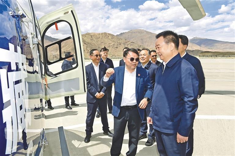 王君正認(rèn)真觀(guān)看展板,詳細(xì)聽(tīng)取匯報(bào),實(shí)地察看直升機(jī)和無(wú)人機(jī)動(dòng)態(tài)演示,深入了解西藏低空經(jīng)濟(jì)發(fā)展工作推進(jìn)情況。他指出,低空經(jīng)濟(jì)具有服務(wù)領(lǐng)域廣、產(chǎn)業(yè)鏈條長(zhǎng)、業(yè)態(tài)多元等特點(diǎn),是前景廣闊的戰(zhàn)略性新興產(chǎn)業(yè)。要把握機(jī)遇、乘勢(shì)而上,理清發(fā)展方向,明確工作重點(diǎn),積極探索創(chuàng)新,打造低空經(jīng)濟(jì)等新增長(zhǎng)引擎,努力為西藏經(jīng)濟(jì)高質(zhì)量發(fā)展作出貢獻(xiàn)。
