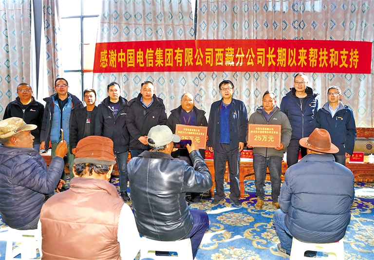 中國電信西藏公司黨委書記、總經(jīng)理周清久代表公司向霍爾巴鄉(xiāng)和吉拉鄉(xiāng)分別捐贈25萬元幫扶資金。