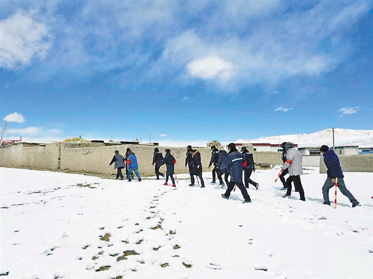 中國電信西藏公司駐霍爾巴鄉(xiāng)駐村工作隊與當(dāng)?shù)嘏沙鏊谪暽4逯車_展巡邏。