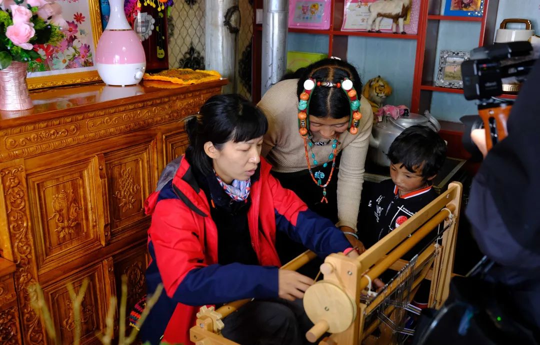 22號,我們和當(dāng)?shù)氐哪僚砗头掂l(xiāng)大學(xué)生們一起組裝織布機,在杭州覺得非常簡單的工作,在這里顯得非常費力,高海拔的體力消耗,一會兒就要坐下大喘氣休息。慶幸本地的大學(xué)生與牧女們非常好學(xué),第一天大家齊心協(xié)力組裝完成了30臺織布機,當(dāng)天培訓(xùn)中正好遇見了浙江衛(wèi)視拍攝“大山里的浙江人”大型融媒體新聞行動!看著浙江來的新聞媒體人都隨身吸氧,感嘆來的人真的是太不容易了,想為浙江人鼓掌!