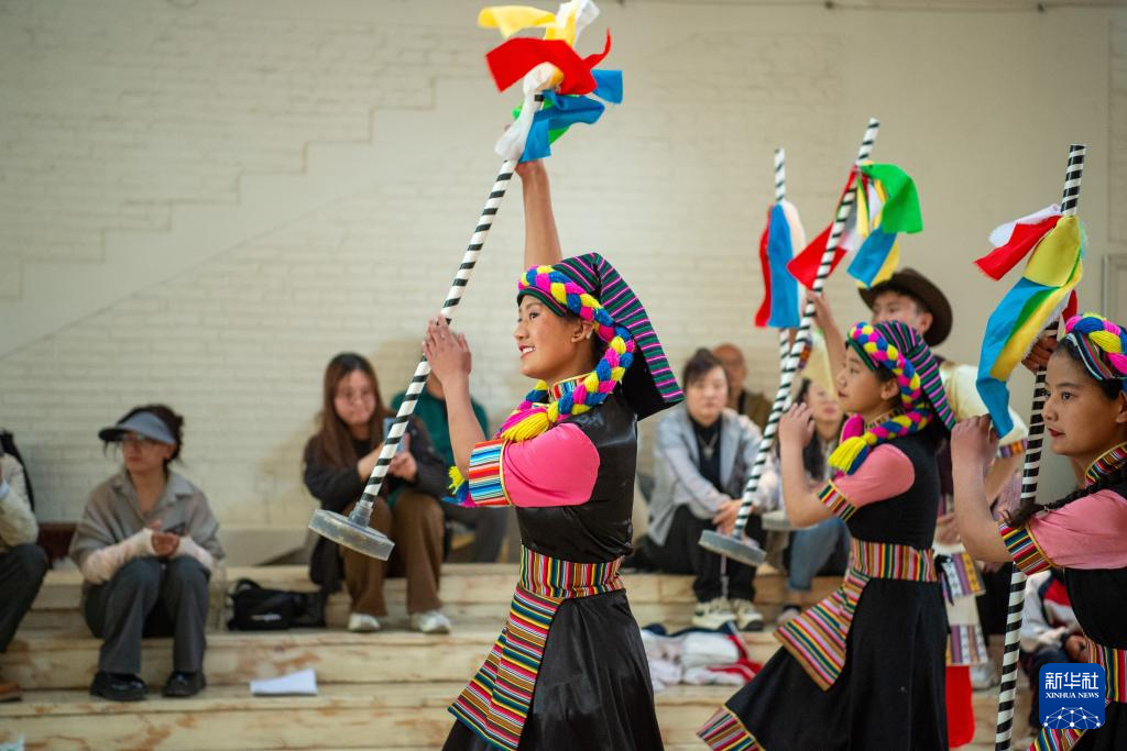 6月5日,拉薩市特殊教育學(xué)校的孩子們?cè)谛聲?shū)發(fā)布現(xiàn)場(chǎng)表演舞蹈。新華社發(fā)(旦增努布 攝)