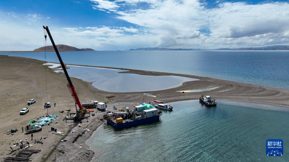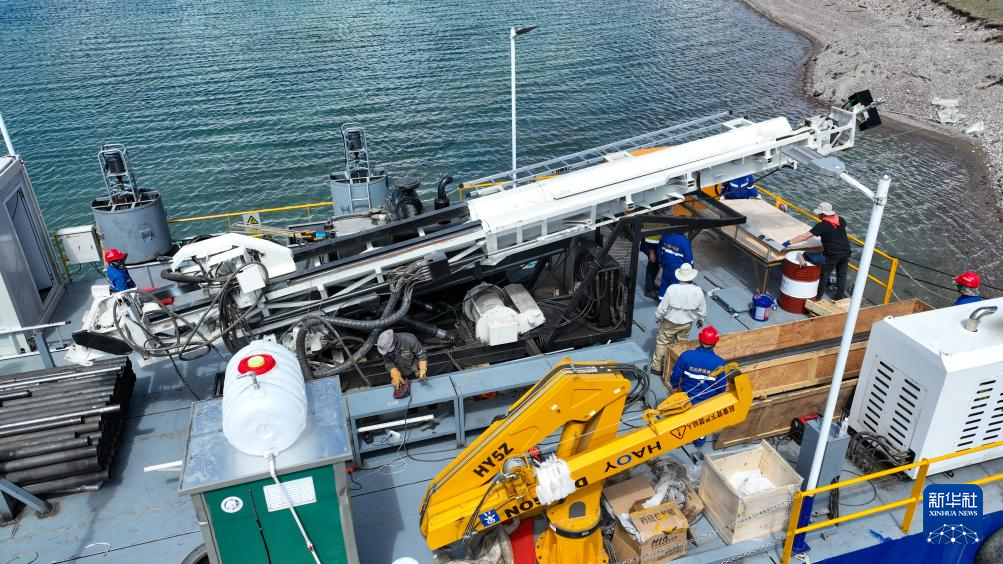 鉆探技術人員架設湖泊鉆探平臺(6月1日攝)。新華社記者 晉美多吉 攝
