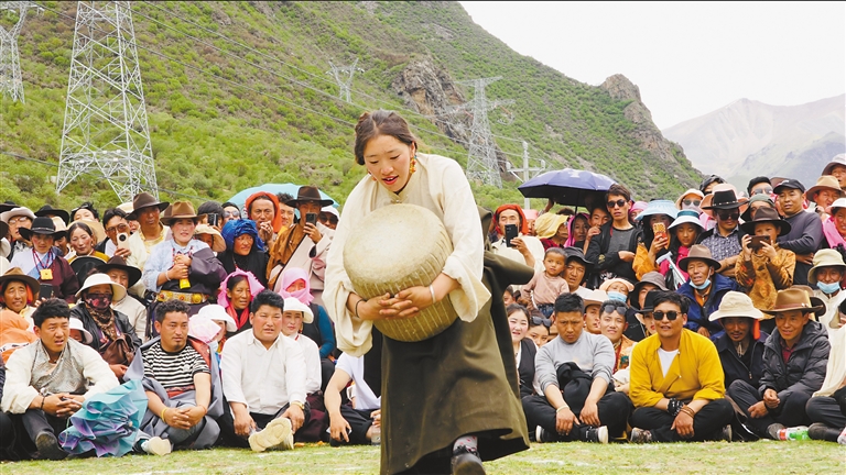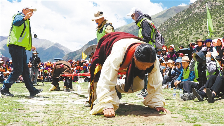 “‘繽紛四季·多彩林周’活動(dòng)內(nèi)容實(shí)在是太豐富了,我們沿途觀賞到了美景,而且還體驗(yàn)了西藏民俗風(fēng)情,現(xiàn)場(chǎng)看到村民們擠牦牛奶、手工制作奶制品、指尖技藝制作酥油花等。讓我們感到震驚的是藏族大哥、大姐的力氣真是太大了,能用繩子拉動(dòng)越野車(chē),扛起百斤重的石頭,給我們帶來(lái)了滿滿的視覺(jué)盛宴。我是第三次進(jìn)藏,這次的收獲最多,讓我體驗(yàn)到了不一樣的西藏?!眮?lái)自北京的游客張先生興奮地說(shuō)。