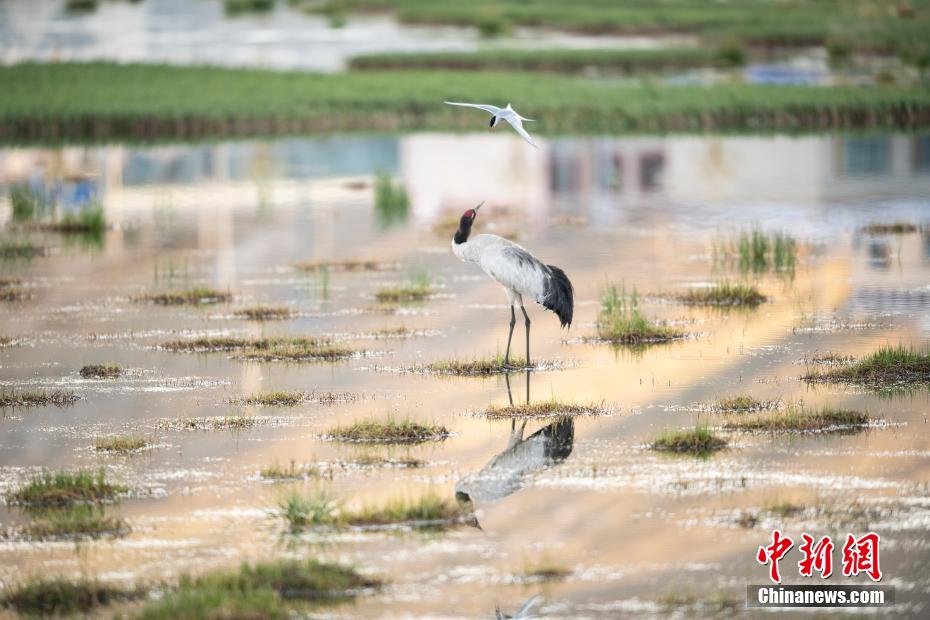 6月12日,西藏那曲市申扎縣一只黑頸鶴在濕地里覓食。申扎縣,平均海拔超過4500米,是黑頸鶴在中國的主要繁殖地之一。每年4月到6月,成群的黑頸鶴會來到這里,筑巢、孵化、養(yǎng)育下一代。近年來,為了保護(hù)這些珍貴的生靈,申扎縣采取了一系列措施,設(shè)立了監(jiān)測站,對黑頸鶴的棲息地進(jìn)行24小時監(jiān)控,確保它們的繁殖不受干擾。黑頸鶴是國家一級保護(hù)動物,也是世界上唯一一種生長、繁殖在高原的鶴類。貢嘎來松 攝