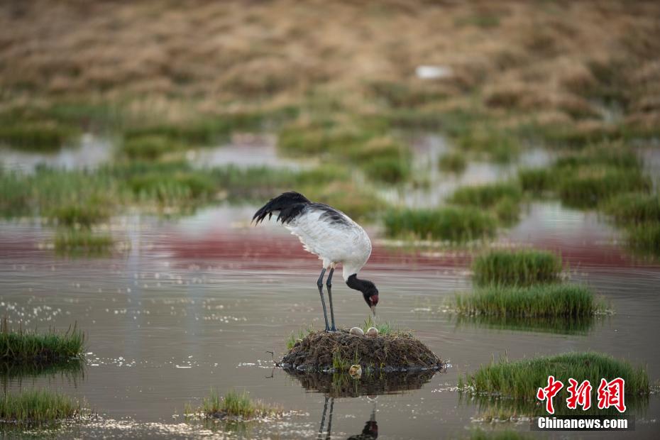 6月12日,西藏那曲市申扎縣濕地里一只黑頸鶴正準(zhǔn)備孵蛋。申扎縣,平均海拔超過4500米,是黑頸鶴在中國的主要繁殖地之一。每年4月到6月,成群的黑頸鶴會來到這里,筑巢、孵化、養(yǎng)育下一代。近年來,為了保護(hù)這些珍貴的生靈,申扎縣采取了一系列措施,設(shè)立了監(jiān)測站,對黑頸鶴的棲息地進(jìn)行24小時監(jiān)控,確保它們的繁殖不受干擾。黑頸鶴是國家一級保護(hù)動物,也是世界上唯一一種生長、繁殖在高原的鶴類。貢嘎來松 攝