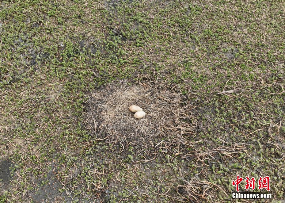 6月12日,西藏那曲市申扎縣濕地里的黑頸鶴蛋。申扎縣,平均海拔超過4500米,是黑頸鶴在中國的主要繁殖地之一。每年4月到6月,成群的黑頸鶴會來到這里,筑巢、孵化、養(yǎng)育下一代。近年來,為了保護(hù)這些珍貴的生靈,申扎縣采取了一系列措施,設(shè)立了監(jiān)測站,對黑頸鶴的棲息地進(jìn)行24小時監(jiān)控,確保它們的繁殖不受干擾。黑頸鶴是國家一級保護(hù)動物,也是世界上唯一一種生長、繁殖在高原的鶴類。貢確 攝(無人機(jī)照片)
