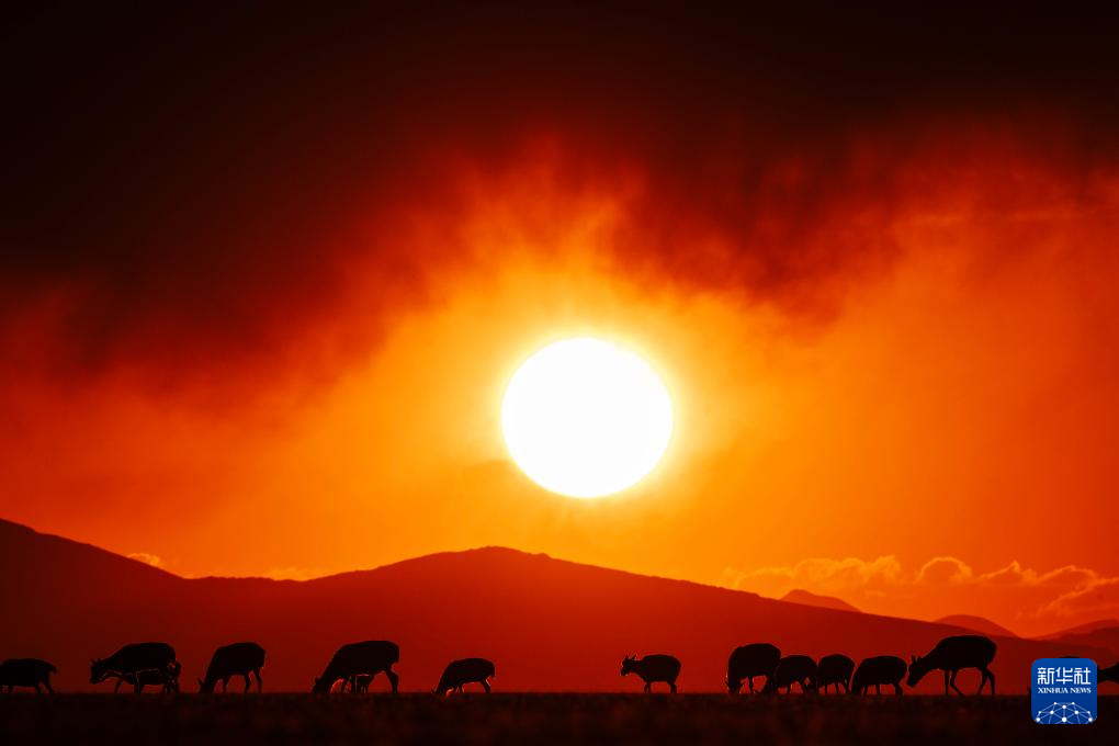 晚霞中待產(chǎn)的藏羚羊(6月16日攝)。新華社記者 費茂華 攝