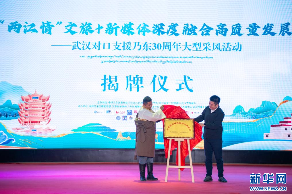 6月20日,啟動(dòng)儀式現(xiàn)場(chǎng),洪山區(qū)融媒體中心與乃東區(qū)融媒體中心共同揭牌中西部全媒體融合共建單位。新華網(wǎng) 旦增努布 攝
