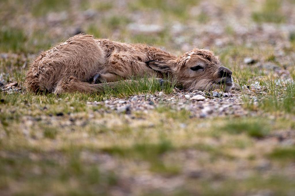 2024年6月17日,羌塘國家級(jí)自然保護(hù)區(qū)境內(nèi)的西藏那曲市申扎縣買巴鄉(xiāng)魯確塘草原上一只剛出生不久的小藏羚羊。