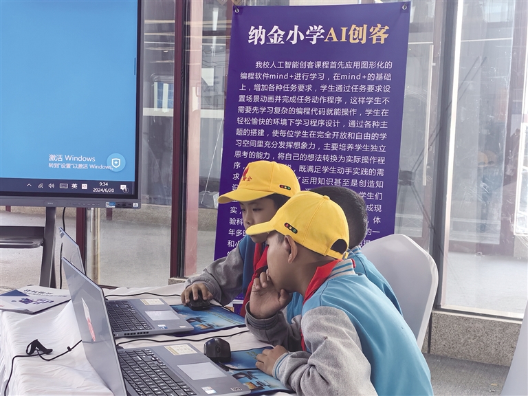 除了植物自動(dòng)檢測(cè)器外,現(xiàn)場(chǎng)還有實(shí)驗(yàn)小學(xué)學(xué)生、納金小學(xué)學(xué)生用電腦編程的“音樂(lè)會(huì)”“氣控游戲”等,各類童真的奇思妙想在數(shù)字教育中得到實(shí)現(xiàn)。