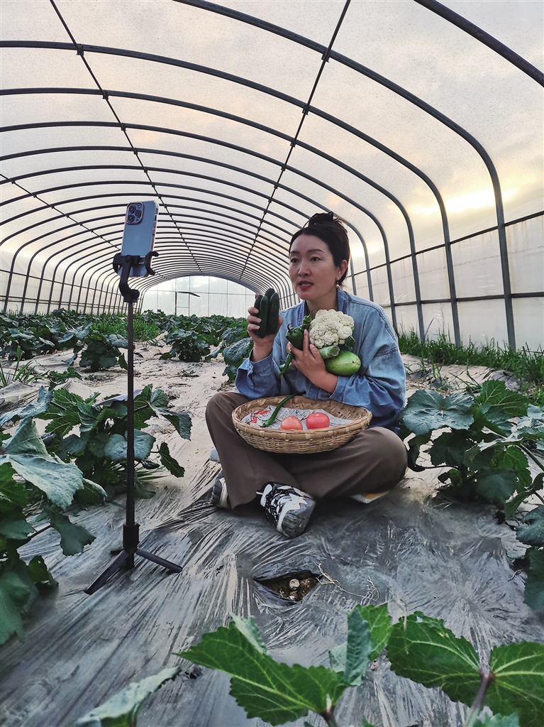 阿佳旺姆在田間進(jìn)行助農(nóng)直播。