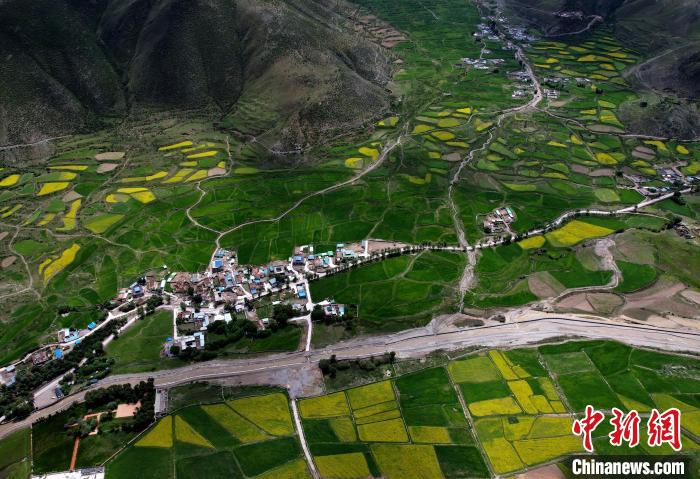 圖為7月10日,拉薩市墨竹工卡縣油菜花盛放。(無人機(jī)照片)中新社記者 李林 攝
