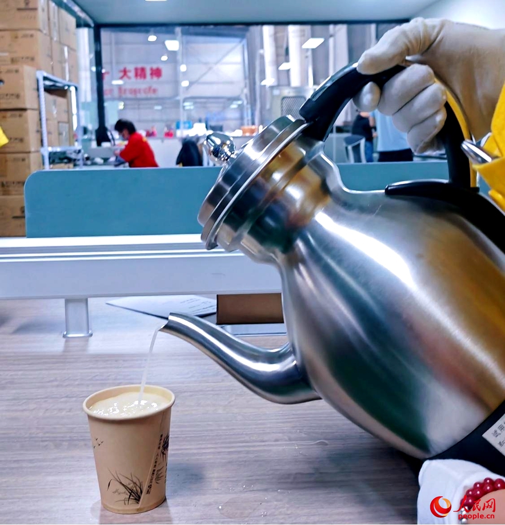 走進生產車間旁的質檢間,工作人員正在測試新上市的酥油茶壺?!斑@是新品,60秒就能做好一杯酥油茶,省時省力?!?/p>
