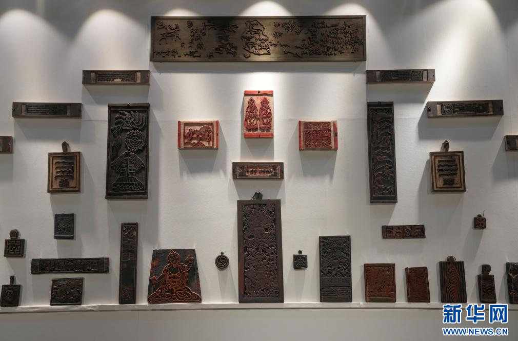 7月19日,工作人員在展示體驗區(qū)的雕版及印刷品。