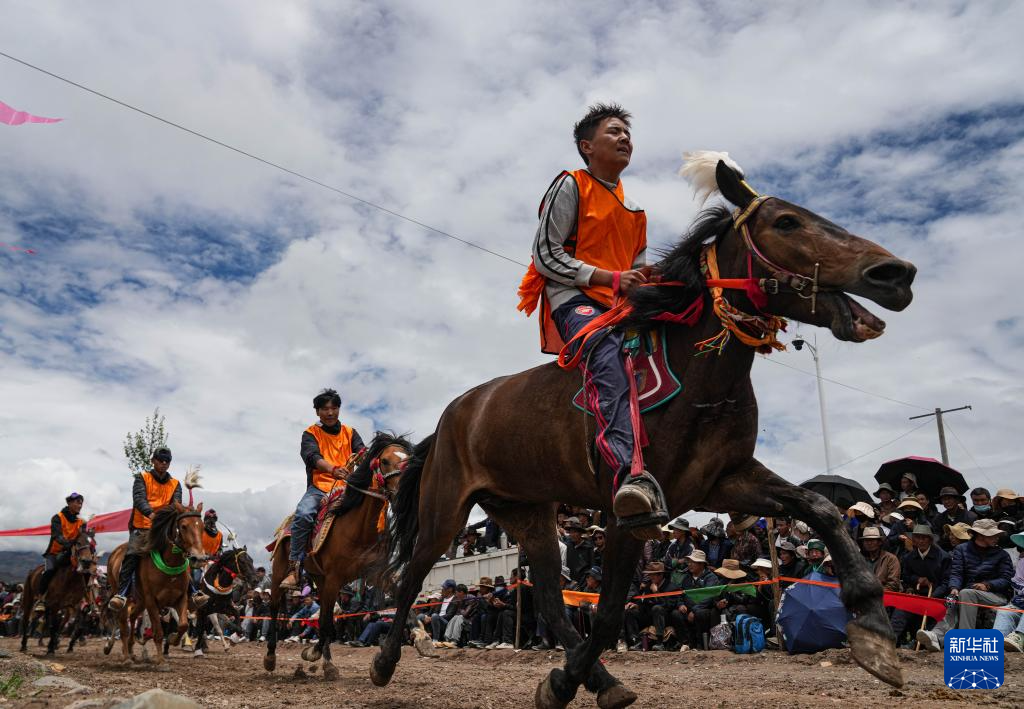 7月23日在拉薩甘丹曲果鎮(zhèn)賽馬場拍攝的走馬比賽。新華社記者 晉美多吉 攝