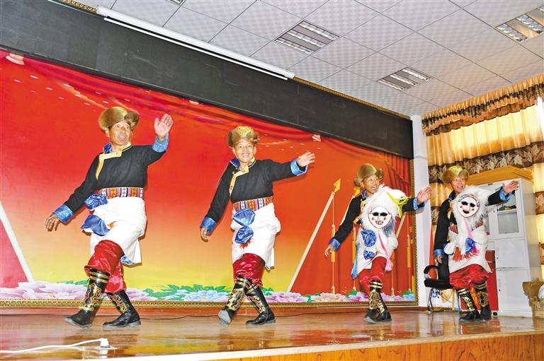 曲松縣曲松鎮(zhèn)下洛村群眾演繹自編自演的“紅色折嘎”說唱節(jié)目。記者 丹增平措 攝