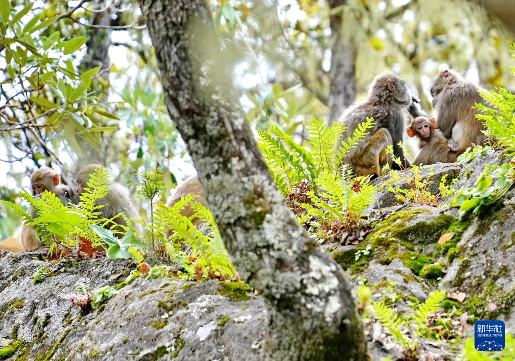 巴松措旅游風(fēng)景區(qū)里的藏獼猴(8月2日攝)。新華社記者 張汝鋒 攝