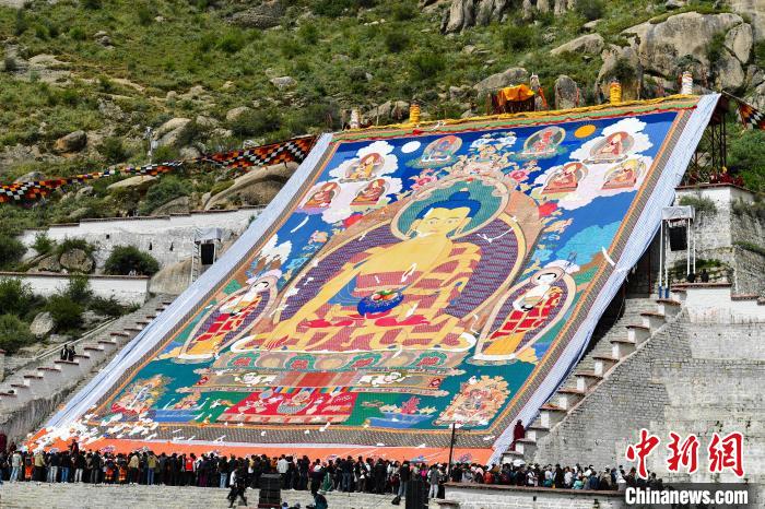圖為哲蚌寺舉行盛大的展佛活動(dòng)。貢確攝