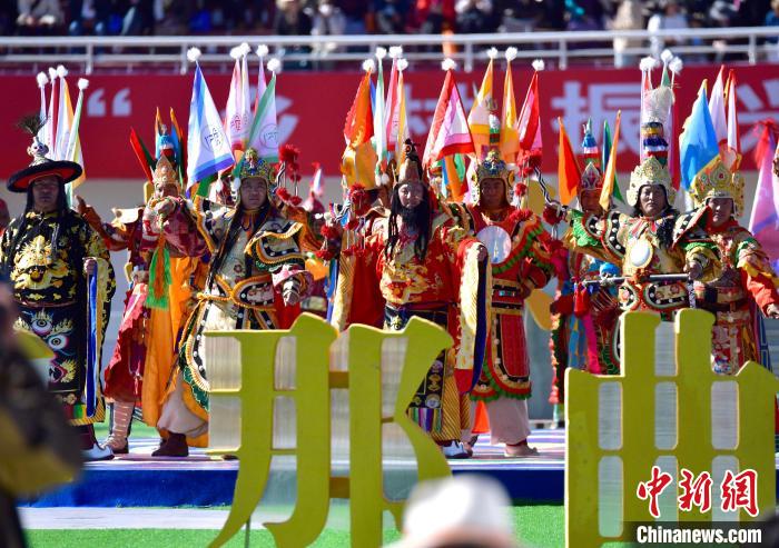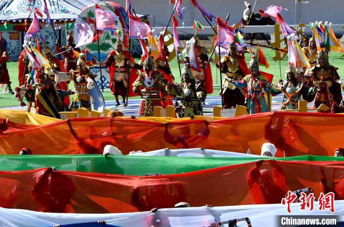 8月10日,2024年那曲恰青賽馬節(jié)暨第三屆“鄉(xiāng)村振興 那曲奮進”活動開幕式在那曲市賽馬場舉行,精彩的文藝歌舞、馬術表演等展示著羌塘草原上的無窮魅力和活力。圖為開幕式文藝表演現場。中新社記者 李林 攝