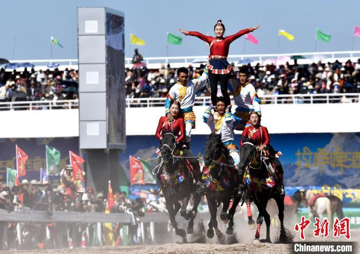 8月10日,2024年那曲恰青賽馬節(jié)暨第三屆“鄉(xiāng)村振興 那曲奮進”活動開幕式在那曲市賽馬場舉行,精彩的文藝歌舞、馬術表演等展示著羌塘草原上的無窮魅力和活力。圖為開幕式上的馬術表演。中新社記者 李林 攝