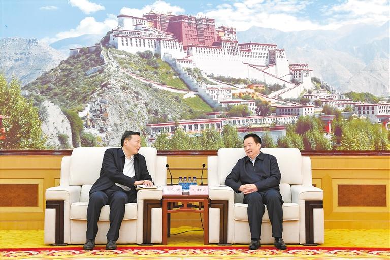 日前,自治區(qū)黨委書記王君正在拉薩與中信集團(tuán)總經(jīng)理張文武一行座談。