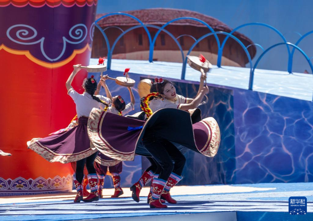 8月19日,演員在第十屆三江茶馬文化藝術(shù)節(jié)開幕式上跳起傳統(tǒng)舞蹈。新華社記者 旦增尼瑪曲珠 攝