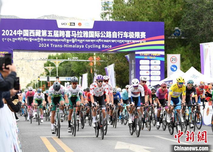 8月24日,2024中國西藏第五屆跨喜馬拉雅國際公路自行車極限賽第二賽段在拉薩開賽。據(jù)悉,本賽段總距離約90.34公里,吸引了來自中國、西班牙、哈薩克斯坦等22支車隊。圖為中國西藏第五屆跨喜馬拉雅國際公路自行車極限賽第二賽段鳴槍比賽。中新社記者 貢嘎來松 攝