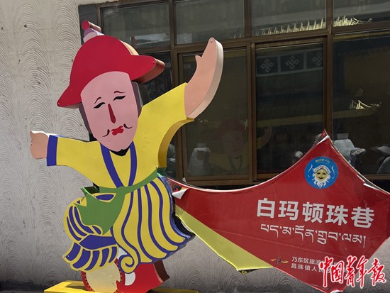 8月6日,西藏自治區(qū)山南市乃東區(qū)昌珠鎮(zhèn)扎西曲登社區(qū),以藏戲傳承人名字命名的街巷。白瑪頓珠是雅礱扎西雪巴藏戲的傳承人,成功恢復(fù)了中斷20多年的雅礱扎西雪巴藏戲表演技藝,對藏戲藝術(shù)的傳承和發(fā)展作出了重要貢獻(xiàn)。中青報·中青網(wǎng)記者 余冰玥/攝