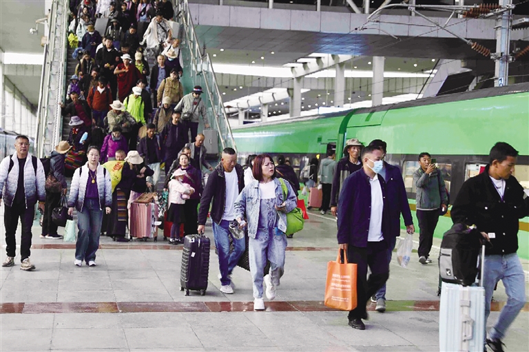 學生運輸是暑運后半程的運輸重點,青藏集團公司針對青藏兩省區(qū)上萬名內(nèi)高班學生返程的實際需求,暢通與地方教育部門以及各大高校招生部門溝通,提前掌握在讀學生返校及新生入學時間,針對學生旅客集中出行的實際,加大學校集中地區(qū)的票額供給,加強出行服務保障力度,在售票廳、自助售(取)票機、檢票口等處所增加引導力量,動態(tài)增開人工驗票、驗證通道,組織志愿者幫助學生旅客進行優(yōu)惠資質(zhì)核驗,提供乘車指引、愛心搬運等暖心服務,多措并舉保障廣大學生旅客順利返校。緊緊把握今年暑期跨省及青藏兩省區(qū)的“旅游熱”,青藏集團公司精心設計開發(fā)客運產(chǎn)品,相繼開行了4趟新疆方向旅游專列,全程開行青海網(wǎng)紅景點——“天空之鏡”茶卡鹽湖方向的1對臨客列車,增加了旅游目的地烏蘭、湟源、海晏等站點的動車組到站??繒r間,并主動加強與青藏兩省區(qū)市政交通部門協(xié)調(diào)聯(lián)動,加大客流集中時段的車輛運力投放,提升公交、出租車、景區(qū)大巴車等接駁運力,為夏日旅游經(jīng)濟注入動能。