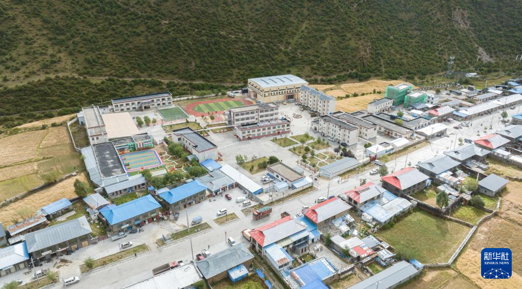 這是無人機(jī)拍攝的林芝市工布江達(dá)縣娘蒲鄉(xiāng)中心小學(xué)全貌(無人機(jī)照片,9月4日攝)。新華社記者 晉美多吉 攝