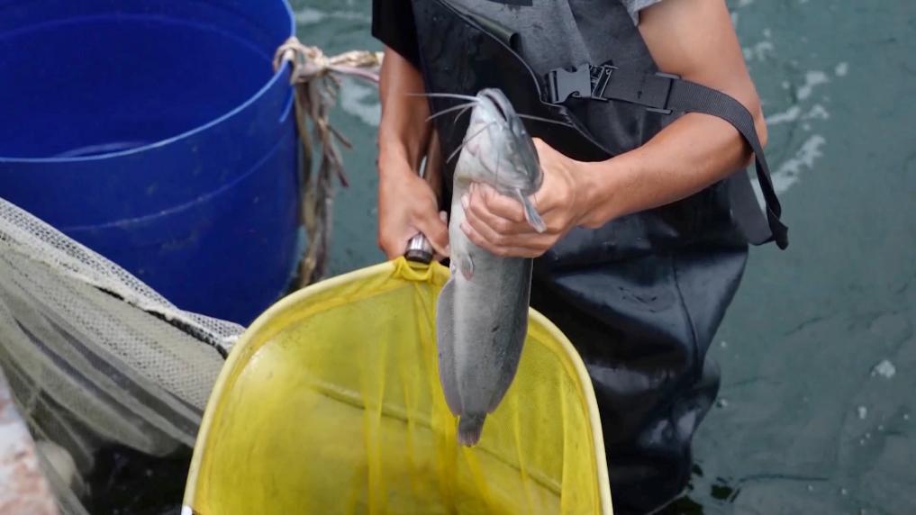 農場職工正在撈魚。