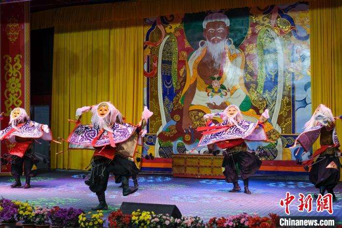 9月7日晚,西藏山南扎西曲登社區(qū)的村民們以藏戲開(kāi)場(chǎng),迎接游客前來(lái)觀看。中新社記者 江飛波 攝