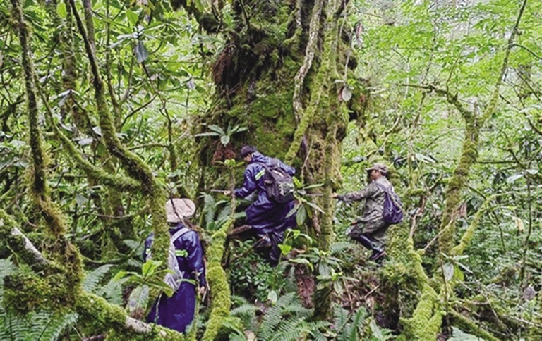 科研人員開展保護(hù)區(qū)極小種群野生植物調(diào)查。圖由林芝市林草局提供