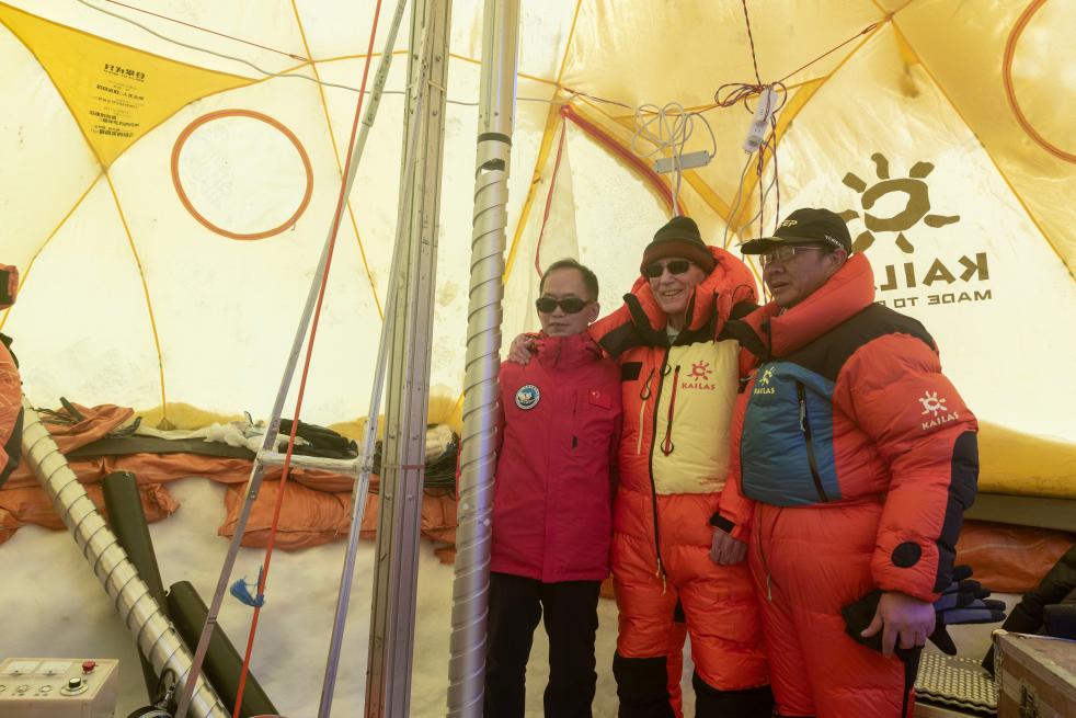 湯普森時(shí)刻關(guān)注著本次冰芯鉆取進(jìn)展。9月7日,湯普森和姚檀棟一道抵達(dá)普若崗日冰原6號(hào)冰川上的冰穹A作業(yè)點(diǎn)。這里,正是他們24年前鉆取普若崗日冰原第一個(gè)冰芯的地方。