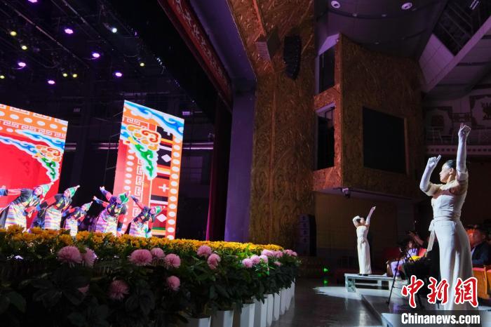 9月23日晚,西藏自治區(qū)首屆殘疾人文藝匯演在拉薩開演,來自西藏各市地的聽障、視障以及肢體殘疾群體紛紛登上舞臺一展風姿,舞蹈、歌曲、手語等節(jié)目輪番上陣。圖為當晚演出現(xiàn)場,孩子們和手語指揮老師相互配合。記者 江飛波 攝
